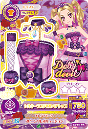 Silky Love Devil Coord es una prima rara coord de la marca sexy Dolly Devil. ¡Debutó en la Parte 3 de Data Carddass Aikatsu! serie y en el Episodio 168 del anime.