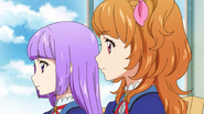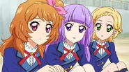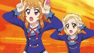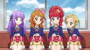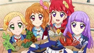 Eventually, the girls watch the scene Juri had been working so hard to pull off on Aikatsu-Sensei and comment on how its popularity keeps raising. Sumire teasingly reminds Hinaki and Akari that they can't just sit around and let Juri get all of the attention, and Akari states that they will have to continue their own idol activities, and the trio share a cheer.