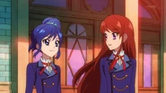 Juri walks into the room and starts to admire the nearby Christmas Tree. She apologizes to Akari for not being able to help, since she has to film the special promotion for Aikatsu Sensei now, but Akari claims it to be alright. As this goes on, Hinaki narrates an introduction for Akari and Juri while the Director films them. Akari asks Juri if she will be returning, and Juri discusses her intention of showing up in time since she's been waiting for the party. Akari is surprised and Juri explains that during her hiatus she had to spend the Christmas with her grandparents since her mom and dad had to work. They got her presents and prepared a special dinner, and even made a little bonsai Christmas Tree, and she even recieved her New Years present a bit early. Then, three years ago she witnessed Ichigo, Aoi, Ran, and Otome pull the tree back on Television. It deeply touched her, and Akari admits that she felt the exact same way.