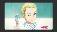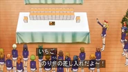 Sakura joins the girls and calls for everyone to join her in the cafeteria, where she explains that work has been going smoothly and they are down to finishing decorations, cooking the food for the event, and stage preparation. She asks for anyone who is done or has free time to lend a hand to anyone still working, and when the girls spot the Director dressed as a snowman, she explains that this is an "off-pic". Akari resumes work with Hinaki finishing decor while Sumire and a couple other girls work on cakes and some other items with Yotsuba.