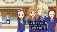 Back at Starlight Academy the party has started, but when Ichigo, Aoi, and Ran arrive to find a worried Sakura, they approach her to discover the girls aren't back yet. But they hear a helicopter flying above the school and rush outside to find the girls, along with Orihime, and Johnny-sensei watching as the tree is being brought in.