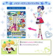 Noisy Pianist Coord (ノイジーピアニストコーデ) is a normal coord made by the cool brand Swing Rock. It debuted in Part 1 of the Data Carddass Aikatsu! 2014 series and made a cameo appearance in Episode 52 of the anime. It shares its design with the Purple Punk Coord.