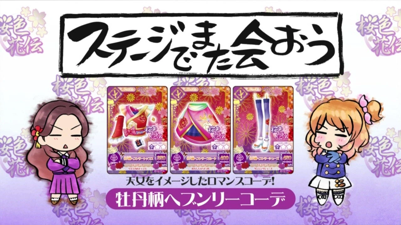 Romance Dresses (ロマンスドレス Romansu Doresu) and Dream Dresses (ドリームドレス Dorimu Doresu) are new cards featured in the 2015 Series of Data Carddass Aikatsu!. These cards are featured within the Story System and necessary for idols perform Story Appeals.