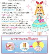 Sweet Choco Mint Coord (スウィートチョコミントコーデ) is a normal coord by the cute brand Angely Sugar. It debuted in the promotional collection of the Data Carddass Aikatsu! series and did not appear in the anime. It shares its design with the Sweet Decoration Coord.