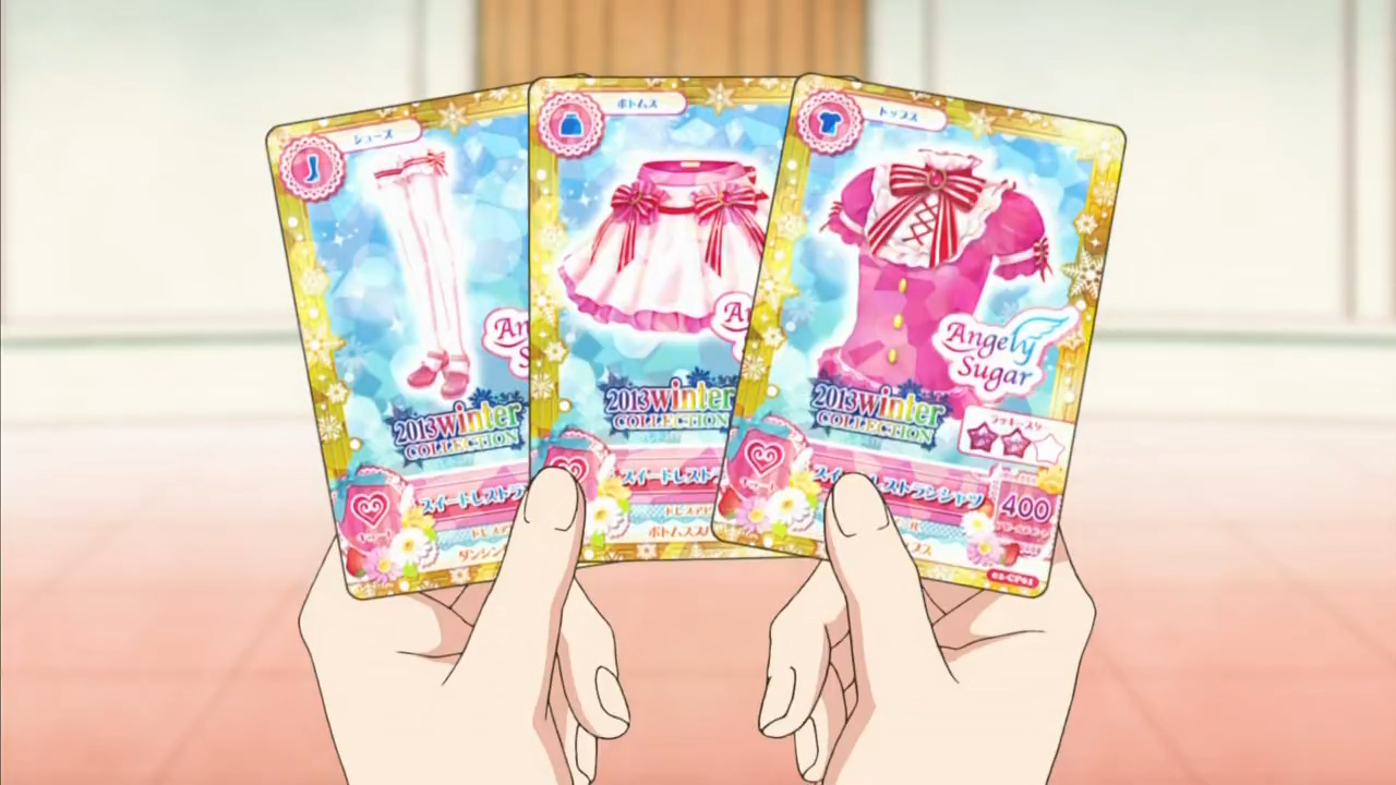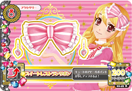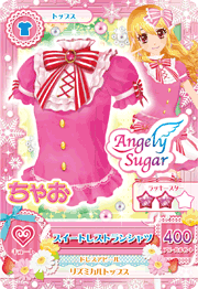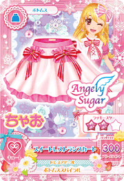 Sweet Restaurant Coord (スイートレストランコーデ) is a campaign rare coord made by the cute brand Angely Sugar. It debuted in Part 2 of the Data Carddass Aikatsu! series and in Episode 12 of the anime. It shares its design with the Sky Restaurant Coord, and is a part of the 2013 Winter Collection.