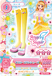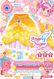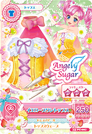 Yellow Swan Coord (イエロースワンコーデ) is a normal coord made by the cute brand Angely Sugar. It debuted in the promotional collection of the Data Carddass Aikatsu! series and did not appear in the anime. It shares its design with the Aqua Swan Coord and the Pink Swan Coord.